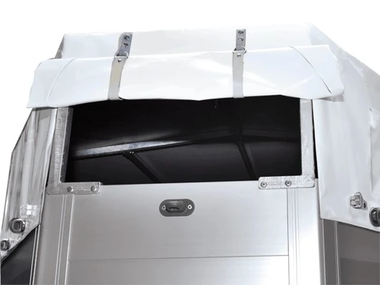 – Bâche et arceau de 350 mm de hauteur, couleur blanche, avec fenêtres de visualisation à l’avant gauche et droite