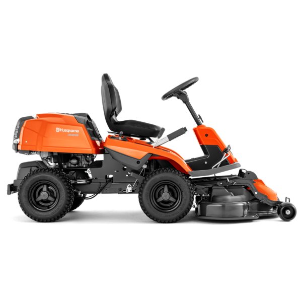 – Avantages : Moteur bicylindre HUSQVARNA de 586 cm3, carter de coupe de 94 cm (fonction éjection et ramassage), transmission hydrostatique, siège confortable, jantes noires.